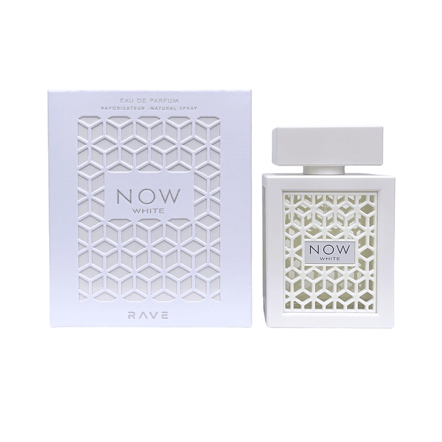 Now White de RAVE es una fragancia de la familia olfativa para Hombres y Mujeres. Esta fragrancia es nueva. Now White se lanzó en 2023. Las Notas de Salida son toronja (pomelo) y bergamota; las Notas de Corazón son pachulí y manzana verde; las Notas de Fondo son ámbar, almizcle y cachemira.